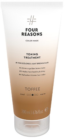 Four Reasons Color Mask Toning Treatment är en tonande, reparerande och återuppbyggande hårinpackning för färgat hår. Inpackningen återupplivar hårfärgen, stärker färgbehandlat hår och ger håret glans. Hårinpackningen är berikad med växtbaserat protein, aminosyror och hydrolyserad quinoa. Alla nyanser går att mixa med varandra för att få en helt egen nyans. Vegansk.