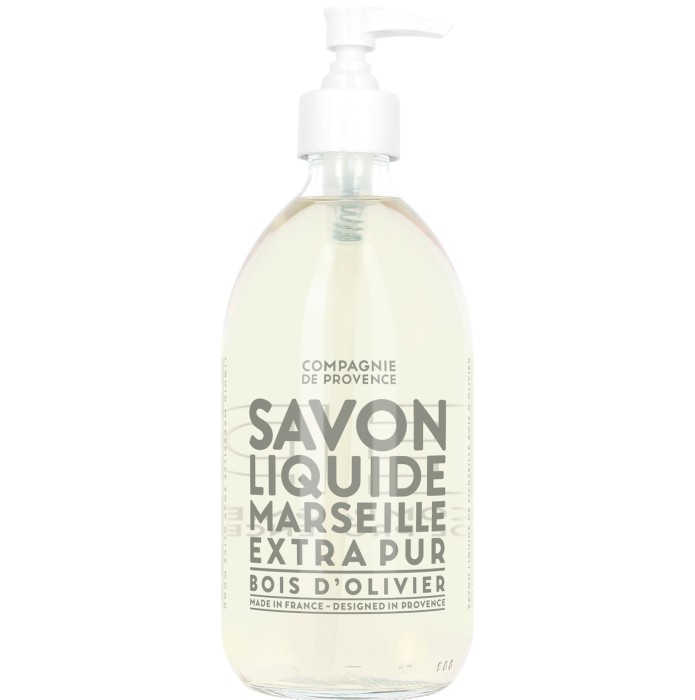Liquid Marseille Soap Olive Wood från Compagnie de Provence är en ultrarik, flytande tvål som förtvålats i en kittel enligt en traditionell metod. Tvålen är berikad med botaniska oljor från Provence. Detta är en sulfatfri tvål som är naturligt rik på glycerin och innehåller kokosolja som ger ett fint och fylligt lödder, och gör att huden känns mjuk vid varje användning