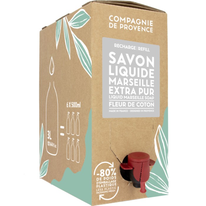 Compagnie de Provence Liquid Marseille Soap Refill, Cotton Flower 3 liter