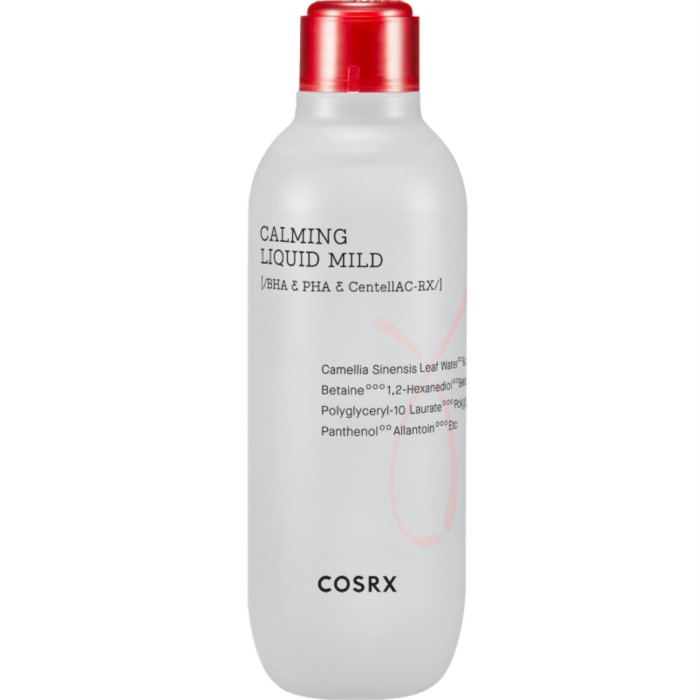 COSRX Calming Liquid Mild är en milt exfolierande toner för hud med orenheter. Irriterar inte huden och hjälper till att vårda hud med märken från blemmor. Hjälper även till att återställa och balansera hudens naturliga pH-nivå genom att kontrollera talgproduktionen. För känslig hud och hud med benägenhet till blemmor och orenheter.