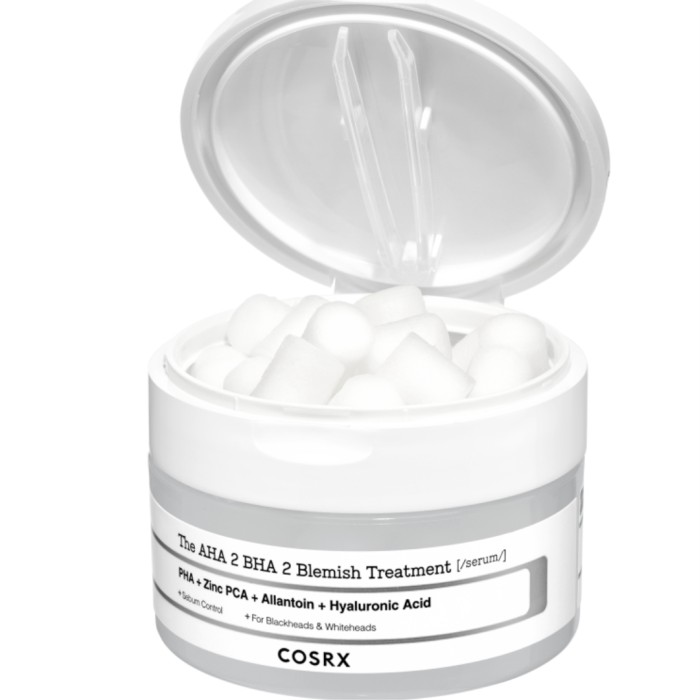 The AHA 2 BHA 2 Blemish Treatment Serum kan användas förebyggande mot blemmor och tilltäpptheter. Innehåller 2% AHA och 2% BHA och levereras i praktiska bomullsbollar för att vara effektivt att använda på ärr från blemmor, pormaskar, vita pormaskar och överflödig talgproduktion. Varje bomullsboll innehåller en intensiv punktbehandling som snabbt absorberas och lugnar huden. Serumet har en textur som är som en blandning av olja och ren vitamin C som lätt absorberas av huden, och gör att huden känns mjuk och får lyster. Om serumet känns klibbigt kan du lägga till en lätt fuktkräm efter applicering. Komprimerade bomullsbollar som innehåller ett potent punktbehandlingsserum och som ger en fräsch känsla.