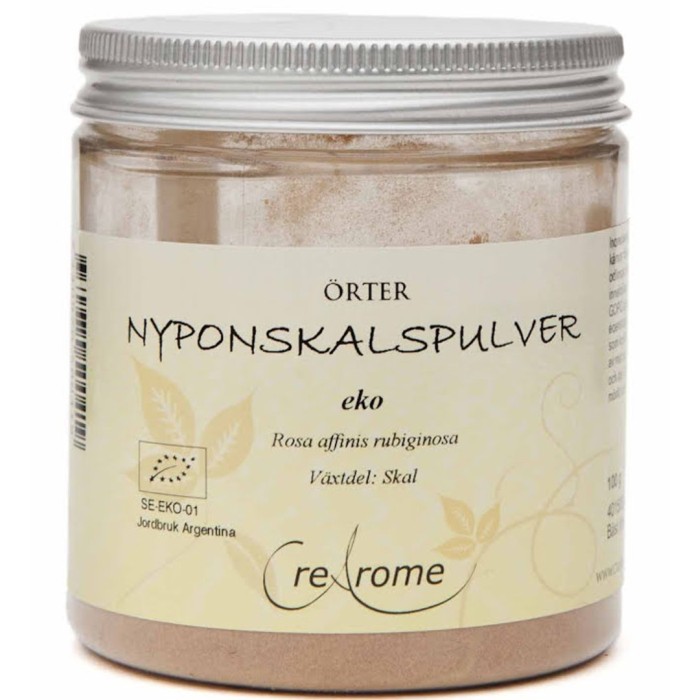 Crearome Nyponskalspulver är gjort på skalet från Rosa affinis rubiginosa. Nyponskalspulvret innehåller naturligt C-vitamin men också pektin, garvämnen och fruktsyror.