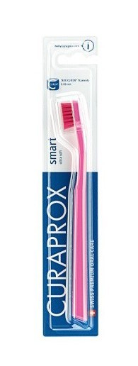 Curaprox Smart Junior är en kopia på Curaprox vuxentandborste 5460, men barntandborsten har tunnare och fler borststrå. Stråna är gjorda av Curen® ett mjukt och tåligt polyestermaterial som är skonsamt för tänder och tandkött. Curaprox Junior har 7600 borststrån och ett oktagonalt handtag som hjälper till att borsta i rätt vinkel för bästa resultat.