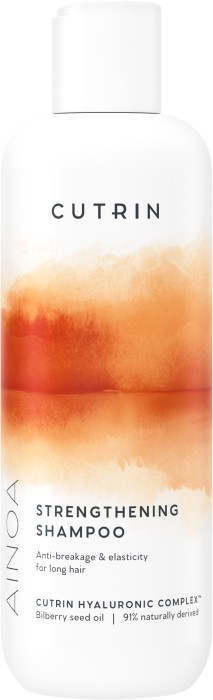 Cutrin Ainoa Strengthening Shampoo är ett stärkande schampo för långt hår. Schampot rengör skonsamt håret, och stärker slitet hår för att hjälpa det att hålla sig långt och friskt. Strengthening Shampoo innehåller UVA- och UVB-skydd för håret. Hjälper till att skydda håret från värme.