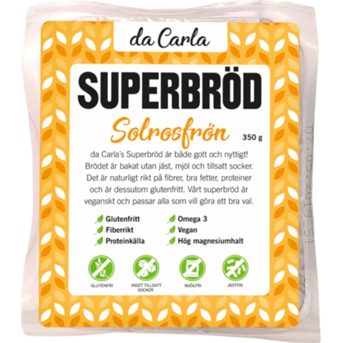da Carla Bröd Solros är ett glutenfritt bröd bakat utan jäst, mjöl eller tillsatt socker.