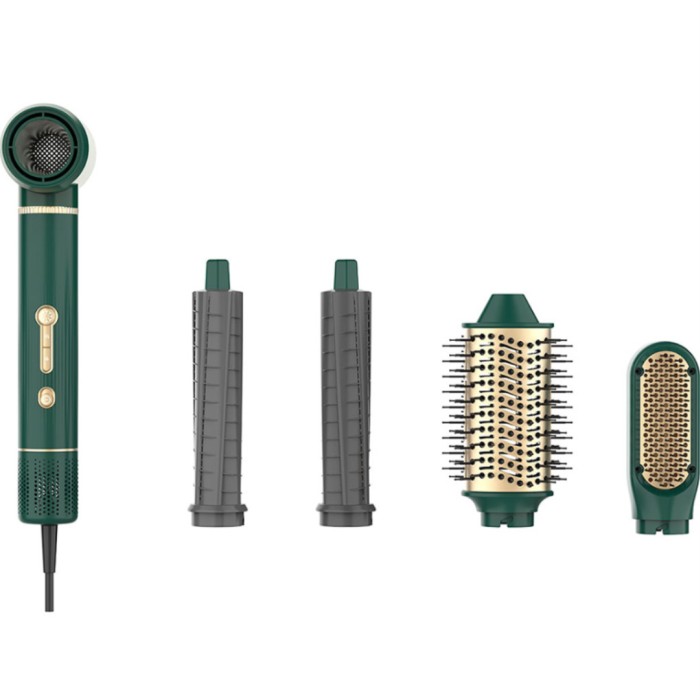 - Fem utbytbara tillbehör för volym, lockar och slät styling