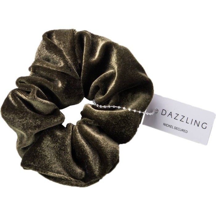 Scrunchie / hårsnodd med olivgrön mjuk sammet. 13 cm i diameter