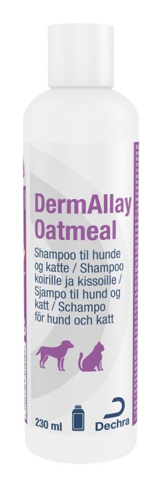 DermAllay Oatmeal schampo är ett schampo för hund och katt som innehåller havremjöl och kan ha lugnande och återfuktande egenskaper. Schampot kan hjälpa till att stärka hudbarriären och lindra klåda. DermAllay Oatmeal schampo kan även användas vid tillstånd med torr seborré. Innehåller ceramider som kan hjälpa till att stödja en skadad hudbarriär.