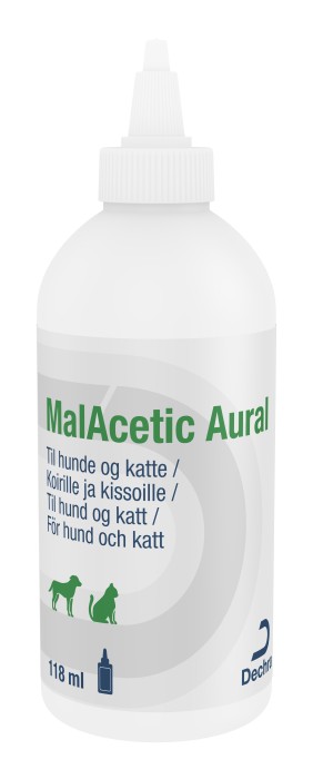 MalAcetic Aural är ett öronrengöringsmedel till hund och katt. Innehåller borsyra och ättiksyra som ger en naturlig dämpning av svamp och bakterier. Upprätthåller en gynnsam miljö i öronen på djur som har en tendens till mikrobiell överväxt.