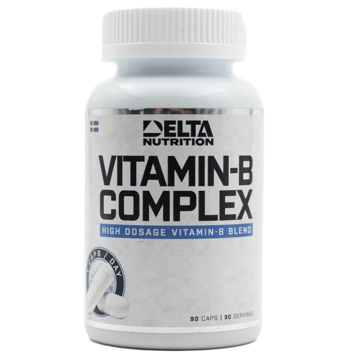 Vitamin B-Complex är ett kosttillskott från Delta Nutrition som innehåller alla åtta B-vitaminer. Varje kapsel innehåller en väl avvägd balans mellan alla dessa B-vitaminer. Utöver B-vitaminerna innehåller det även PABA, inositol och kolin.