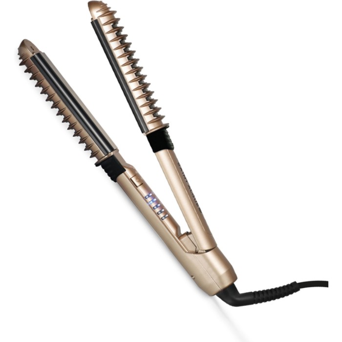 X-Curler 2-in-1 Straightener & Curler har fem temperaturinställningar (150–230°C) så att du kan anpassa värmen efter din hårtyp. Den långa, vridbara sladden ger extra rörelsefrihet vid styling.