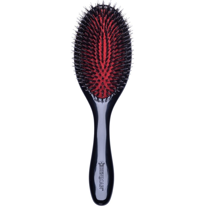 Denman D81M The Style & Shine Medium är en hårborste med en blandning av naturliga borst och nylonpiggar. Bra att använda för att reda ut håret och ge det glans. Med flexibla nylonborst i en luftkuddeförsedd dyna tar sig Denman D81M hårborste enkelt genom håret. Borsten har ett lätt och balanserat handtag.