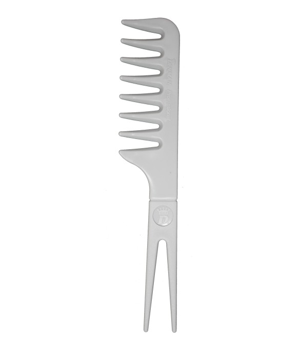 Denman Jack Dean D25 Fantail Comb är en kam med breda tänder som kan användas i både vått och torrt hår och för att reda ut håret. Kammens handtag är delat är två "spetsar" vilket gör det enkelt att bena upp håret i sektioner. Kammen kan också användas för att skapa volym och separera lockar.