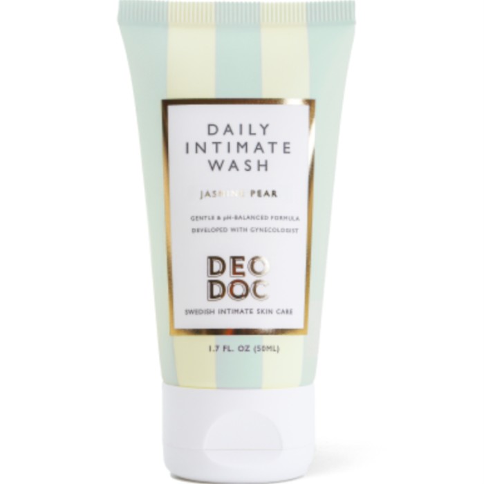 DeoDoc Daily Intimate Wash Jasmine Pear är en intimtvål med en skonsam formulering som ger en silkeslen känsla. Intimtvålen är speciellt framtagen för att bibehålla vulvans naturliga pH-värde (pH 5). Doften heter Jasmine Pear. Praktisk liten förpackning med 50 ml.