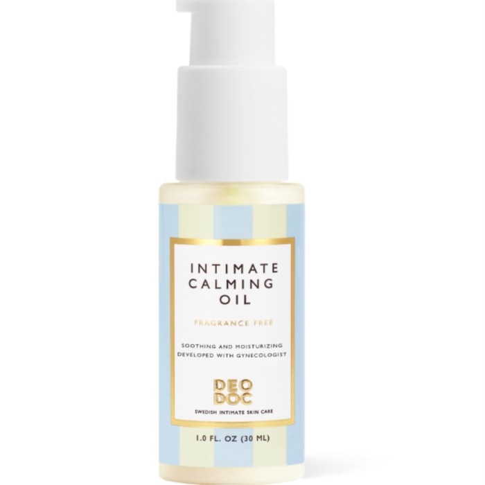 DeoDoc Intimate Calming Oil Fragrance Free är en intimolja som fungerar som en bodylotion för intimområdet (inre och yttre blydläppar samt slemhinnor). Oljan är speciellt framtagen för att lugna intimområdet och återfukta torra slemhinnor vid lindriga underlivsbesvär.