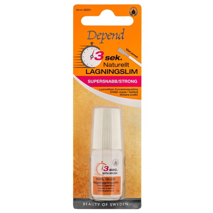 Depend 3 Sek Naturell är ett lagningslim för naturliga naglar. Limmet kan vara praktiskt att ha till hands i väskan för att snabbt och enkelt kunna laga sprickor i din naturliga nagel.