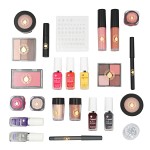 Kalendern innehåller: 7 nagellack (Mixade färger. Färgerna kan variera.), 2 skimmer för ansikte/kropp, 2 eyeliner, 3 läppglans i burk, 2 läppglans med applikator, 1 mascara, 1 rouge, 2 highlighter, 1 burk nageldekorationer, 1 ark nagelstickers (motiven kan variera).