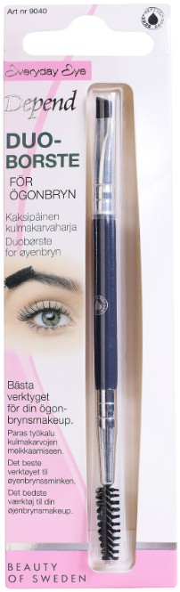 Everyday Eye Duoborste från Depend är en duoborste med en snedskuren pensel för applicering av t ex ögonbrynsskuggor, och en cylinderformad borste för att borsta och fördela färgen.