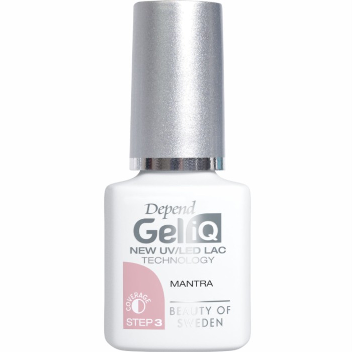 Mantra är ett färgat lack i Depends serie Gel iQ och används som en del i Gel iQ nagelvårdsrutin. För övriga produkter som du behöver för din nagelrutin, köp Gel iQ Start Kit där allt utom det färgade lacket ingår.