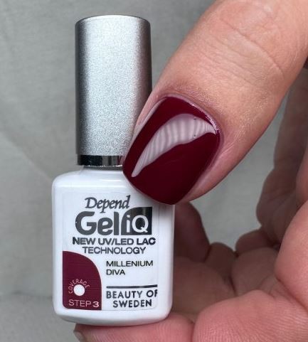 Depend Gel iQ är en lackbehandling som hjälper dig att få perfekt glansiga naglar med fem enkla steg - och som håller i upp till 14 dagar. Du behöver inte förbereda din naturliga nagel med någon primer, utan du rengör först naglarna med Gel iQ Pre-Cleanser innan du utför din lackbehandling. UV/LED-lampan som man ska använda är speciellt utvecklad med en härdningstid på 30 sekunder i varje applikationssteg. (När lampan används får du en självutjämning där eventuella ränder försvinner under härdningen, även om du inte lackat helt jämnt.) Efter att du härdat topplacket i lampan återstår rengöring med High Shine Cleanser, ett steg som ger naglarna fin glans och färgåtergivning. Lacket kan sedan tas bort med vegetabilisk specialolja i varmt vattenbad.