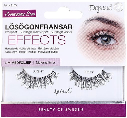 Depend Lösögonfrans Spirit är en lång, fyllig frans för en både naturlig och festlig look. Perfekt för dig som vill intensifiera din makeup och ge ögonen en look håller hela dagen och kvällen.