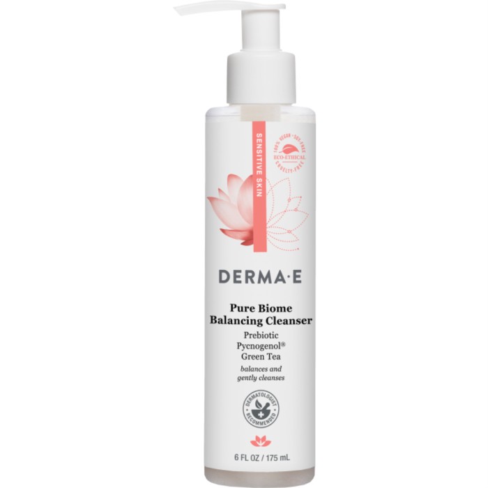 Derma E Pure Biome Balancing Cleanser är en rengöring som varsamt avlägsnar makeup och orenheter och samtidigt lugnar huden. Pure Biome Balancing Cleanser innehåller anti-aging-antioxidanterna Pycnogenol® och grönt te för att skydda huden under rengöringen. Växtextrakt från kamomill och citrongräs lugnar huden och ger en uppfriskad känsla. Passar även känslig hy.