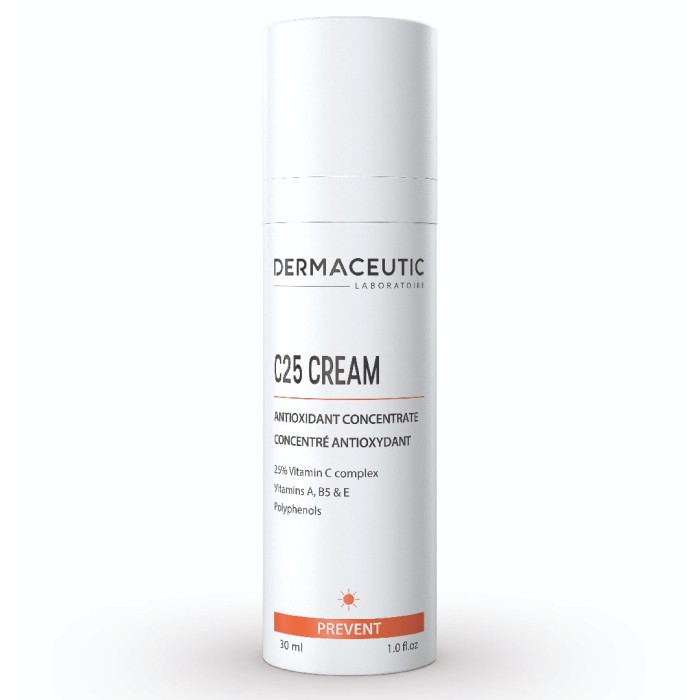 Dermaceutic C25 Creme är en skyddande ansiktskräm som hjälper till att förebygga pigmenteringar och rynkor. Krämen innehåller en hög halt av stabiliserat C-vitamin för att ge huden fin lyster.