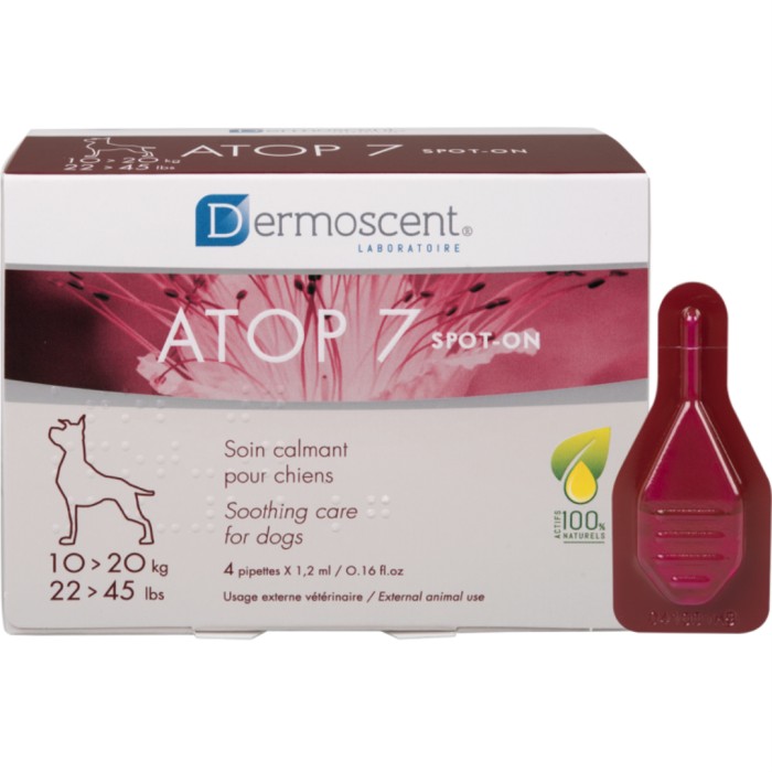 ATOP 7 Spot-on är baserat på naturligt lugnande ingredienser och är speciellt framtaget för irriterad eller allergisk hud. Hjälper till att lugna och stärka huden utöver läkemedelsbehandlingar och mellan episoder eftersom regelbunden och kontinuerlig användning hjälper till att främja reparation av hudbarriären för ett bättre naturligt försvar av huden.