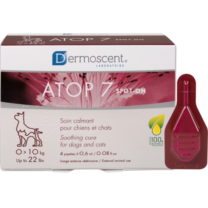 ATOP 7 Spot-on är baserat på naturligt lugnande ingredienser och är speciellt framtaget för irriterad eller allergisk hud. Hjälper till att lugna och stärka huden utöver läkemedelsbehandlingar och mellan episoder eftersom regelbunden och kontinuerlig användning hjälper till att främja reparation av hudbarriären för ett bättre naturligt försvar av huden.