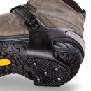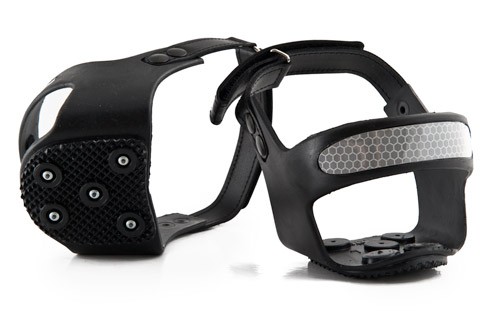 Tvärstopp halkskydd sätter du på klacken på dina skor. Sätts enkelt fast med kardborreband över vristen. Du kan behålla Tvärstopp på när du kör bil, cyklar eller åker buss.