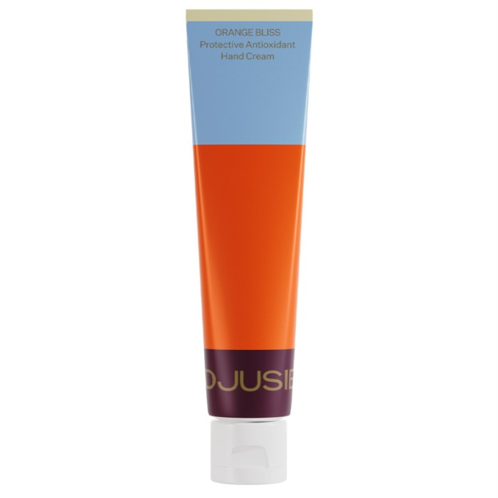 Djusie Orange Bliss Hand Cream är en skyddande handkräm som lämnar en "second skin-känsla" på huden. Djusies återfuktande handkräm Orange Bliss binder fukt i huden och lämnar inte någon fet yta.