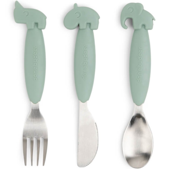 Done by Deer Easy-Grip Cutlery Set Deer Friends, Green