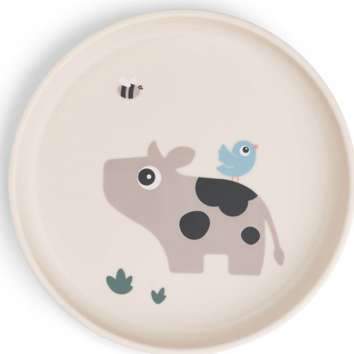 Foodie Plate Tiny Farm från Done by Deer är en praktisk babytallrik med halkfri botten, som sitter på plats under måltiden. Tallriken har en hög kant som hjälper de små att ösa upp maten. Materialet är slitstarkt, håller bra och är återvinningsbart när tallriken är utsliten.