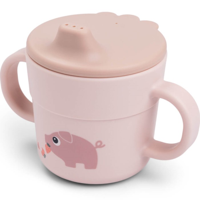Foodie Spout Cup Tiny Farm från Done by Deer är en pipmugg med två handtag som gör det enkelt för barnet att använda koppen själv. Muggen har ett avtagbart lock. Kan användas i mikrovågsugn och diskmaskin. Materialet är slitstarkt, håller bra och är återvinningsbart när muggen är utsliten.