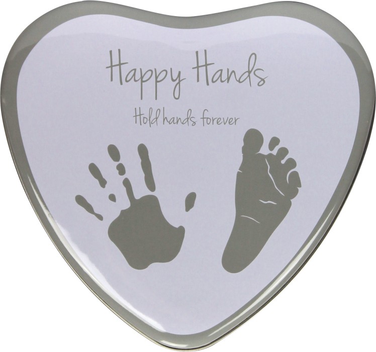 Dooky Happy Hands Heart Shape är en hjärtformad plåtask med plats för barnets hand- och fotavtryck. Den söta asken innehåller lera och instruktioner.
