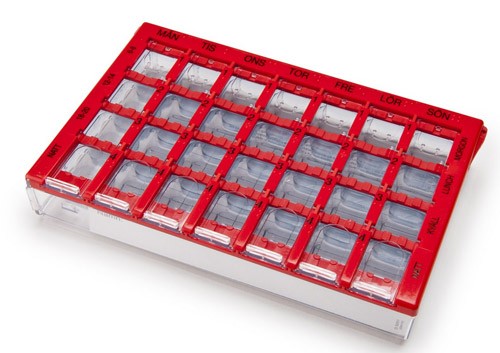 Observera att alla läkemedel inte passar för att förvaras i en dosett. Läs i bipacksedeln för dina läkemedel. Om din läkemedel t ex är ljuskänsliga eller fuktkänsliga passar de inte för att ligga i en veckodosett. Skall handdiskas i ljummet vatten. Tål ej maskindisk.