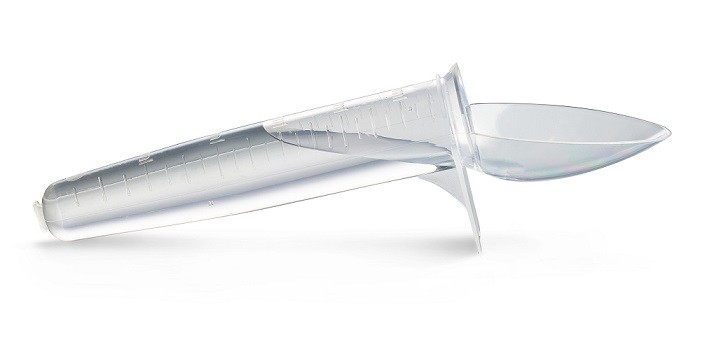 En doskil i bioplast som är avsedd för dosering av flytande läkemedel för oralt bruk. Doskilen är graderad för att underlätta dosering av läkemedlet. Före användning ska doskilen alltid rengöras och torkas.