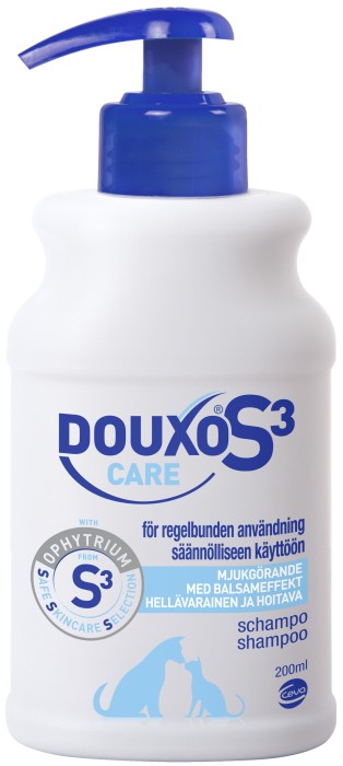 DOUXO S3 Care Schampo är ett grundschampo för daglig rengöring och pälsvård för hund och katt. Ett milt rengörande med återfuktande schampo med vårdande ingredienser som har en balsameffekt. Ger pälsen glans och hjälper till att reda ut och förebygga tovor.