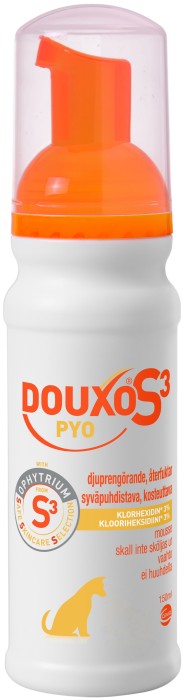 Douxo S3 Pyo Mousse balanserar och djuprengör oren hud på hund och häst. Moussens återfuktande och vårdande ingredienser har en balsameffekt på pälsen. Används utan bad/vatten och ska inte sköljas ur.