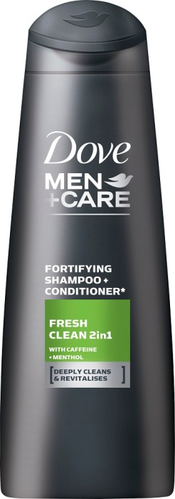 Dove Men Care Fresh Clean 2-in-1 Shampoo & Conditioner är ett kombinerat schampo och balsam som rengör och stärker håret. Schampot är berikat med koffein och menthol.
