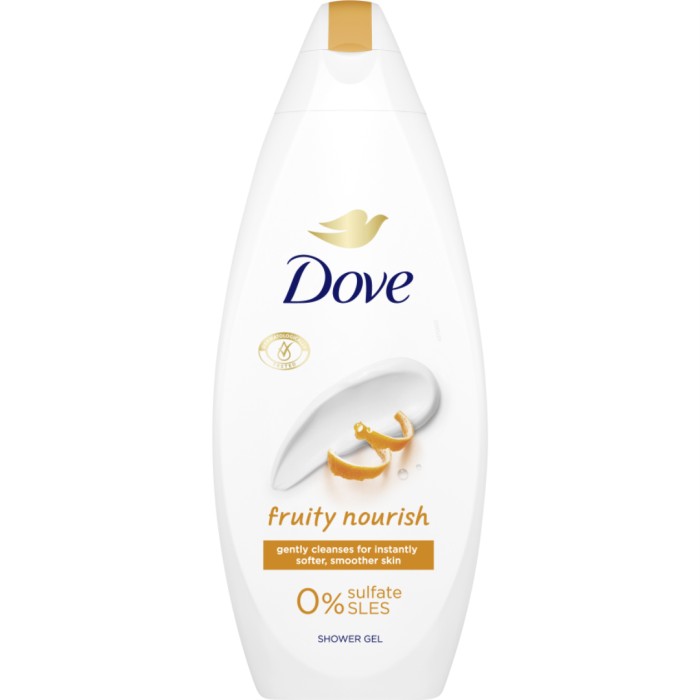 Dove Fruity Nourish duschtvål är en skonsam duschkräm som hjälper till att vårda huden så att den blir mjukare och lenare efter bara en dusch. Fruity Nourish duschtvål har en formulering som är speciellt framtagen för att vara mild och skonsam mot huden och innehåller 100 % naturliga ingredienser. Tvålen tar inte bort hudens naturliga fukt, utan gör så att huden förblir återfuktad och mjuk. Den ger också näring åt huden och är mikrobiomvänlig.