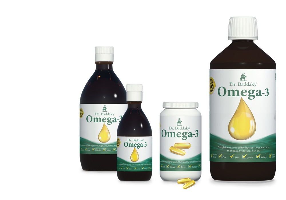 Dr. Baddaky Omega-3 är en fiskolja för hund, katt och iller. Dr. Baddakys fiskolja är en ren naturprodukt, framställd genom rening av naturliga oljor från kroppsfettet i fisken. Speciellt för denna fiskolja är det höga innehållet av fettsyran EPA (Eikosapentaensyra).