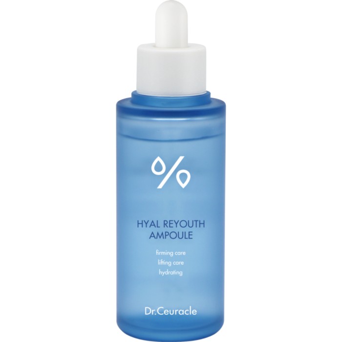 Dr. Ceuracles Hyal Reyouth Ampoule är ett serum som innehåller sex olika typer av hyaluronsyra, för att återfukta torr hud på djupet. Serumet har en geléliknande konsistens och sjunker lätt in i huden. Ger intensiv återfuktning och näring till huden samtidigt som vitamin B5 och vitamin B3 stärker hudens fuktbarriär och ser till att huden håller sig återfuktad under lång tid. Hyal Reyouth Ampoule innehåller även Fructan (en typ av fruktos) som främjar hudcellernas reproduktion och stärker hudens elasticitet.