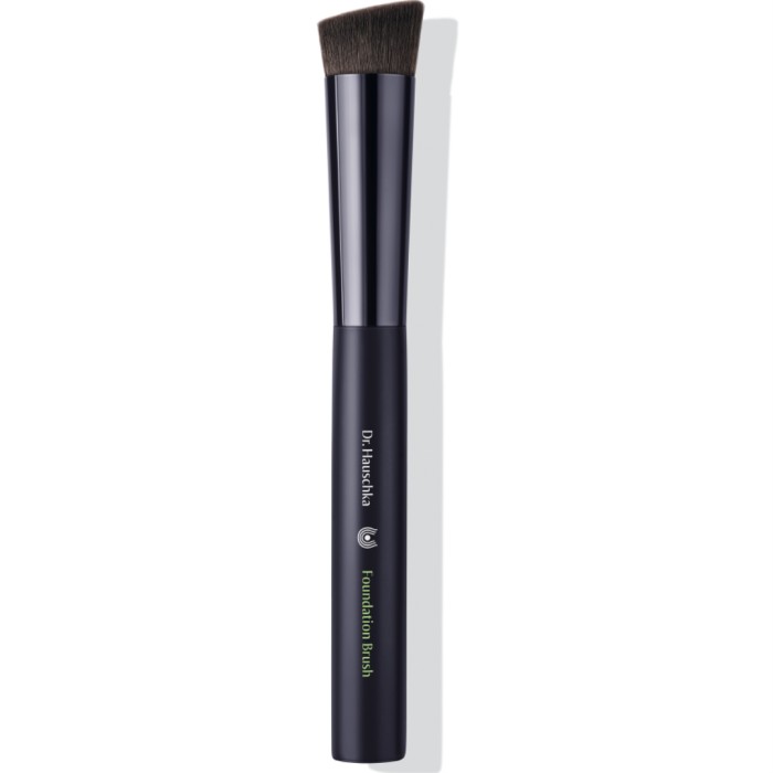 Dr. Hauschka Foundation Brush är en flat, snedskuren pensel med syntetiskt hår som lätt glider över huden. Borsten fördelar flytande texturer optimalt för en jämn hudton.