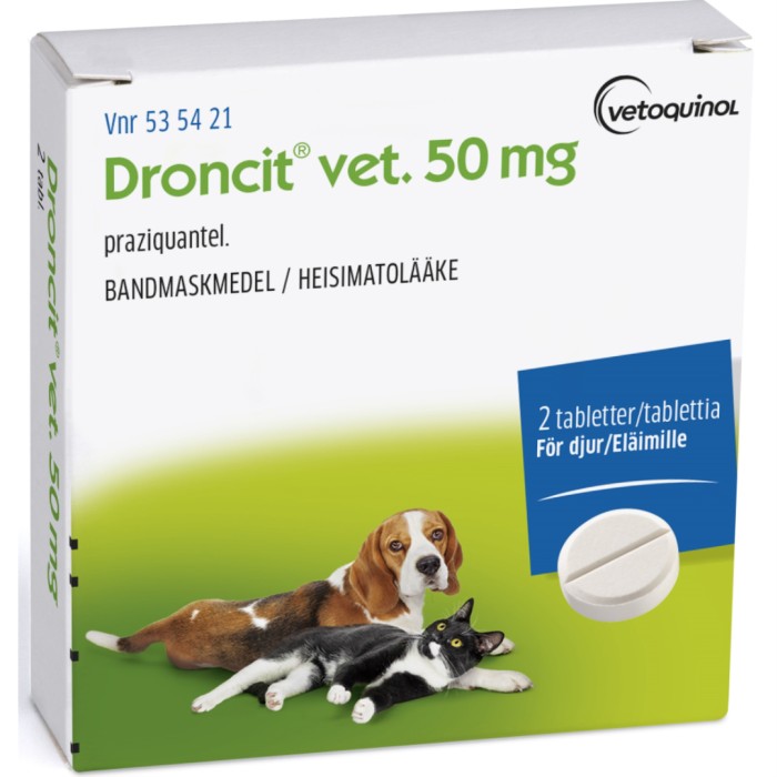 Droncit vet är ett avmaskningsmedel mot bandmask för både hund och katt. Tar även rävens dvärgbandmask. Droncit är tabletter som ges som engångsdos.