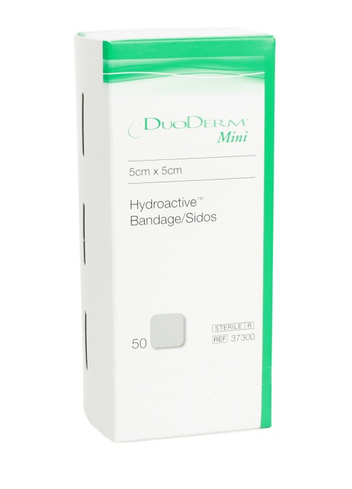 En självhäftande hydrokolloidplatta som är lämplig att använda till mindre sår med mindre sekretion. Duo Derm Mini kan även användas på områden där bandage inte är lika lätt att använda, exempel på ryggområdet samt småkirurgi, laparaskopisk kirurgi eller biopsier.