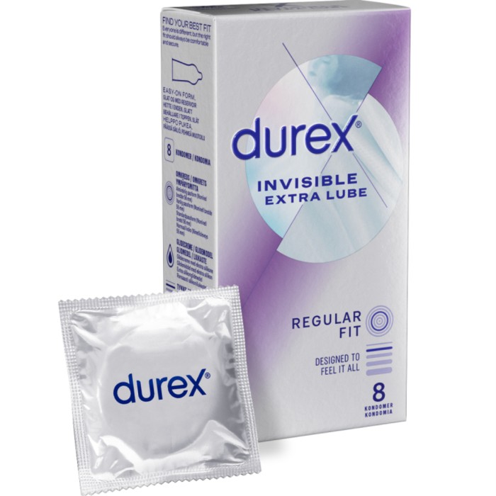 Durex Invisible Extra Lube kondomer är ultratunna latexkondomer utvecklade för att öka känsligheten i varje form av sexuell upplevelse. Kondomerna är designade för att öka känsligheten utan att kompromissa med säkerhet och skydd. Kondomerna är täckta med extra silikonbaserat glidmedel för att ge en extra skön känsla. Durex Invisible kondomer är ultratunna för en känsla av en intensiv kontakt i varje form av sexuell upplevelse.