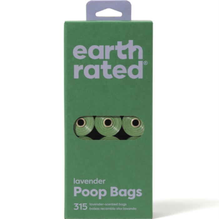 Earth Rated Poop Bag Refill till Earth Rated påshållare. 21-pack (21 rullar) där varje rulle innehåller 15 påsar, totalt 315 st påsar, med lavendeldoft.