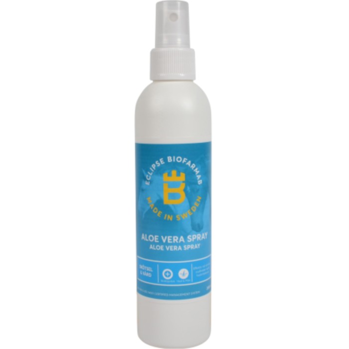 Eclipse Biofarmab Aloe Vera Sårspray 99% är en sårspray för häst som kan användas vid insektsbett, svullnader och sår. Sprayen rengör och skapar förutsättningar för sårläkningen. Efter tvättning med sårspray rekommenderas applicering av Aloe Vera Gel.
