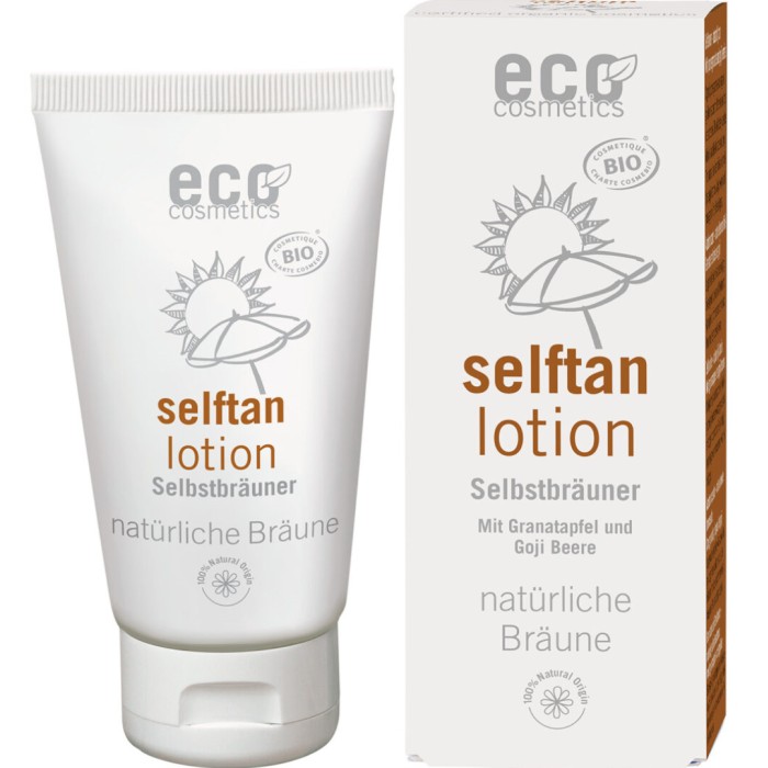 Eco Cosmetics Brun utan sol tas snabbt upp av huden och ger även blek hud en jämn och naturlig färg som varar i flera dagar. Upprepad användning kan ge en mer intensiv solbränna. Färgen utvecklas efter ett par timmar. Brun utan sol-krämen innehåller extrakt av granatäpple och gojibär som hjälper till att hålla huden mjuk och len.